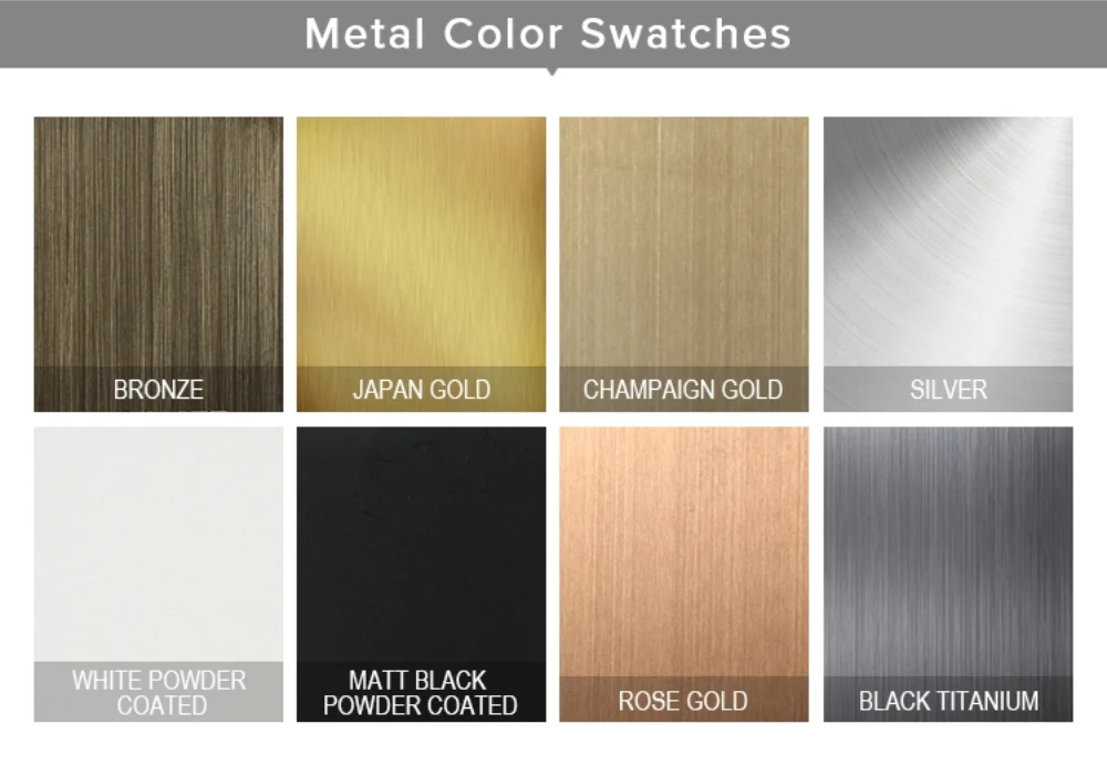 | Color | Mirror Silver, Brushed Silver, Mirror Rose Gold, Brushed Rose Gold, Bronze, Black |