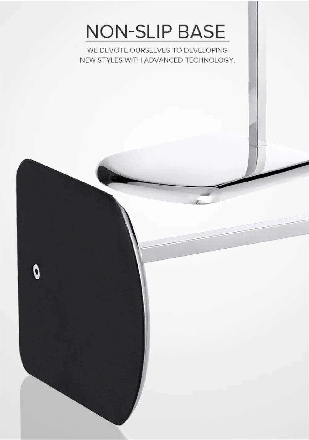While the silver glossy finish is a sophisticated choice, we understand that one size doesn’t fit all. That’s why we offer customization options for a variety of metallic effects, such as gold, matte, or brushed metal finishes. Tailor the stand to match your store’s aesthetic and branding, making it a perfect fit for your unique style.