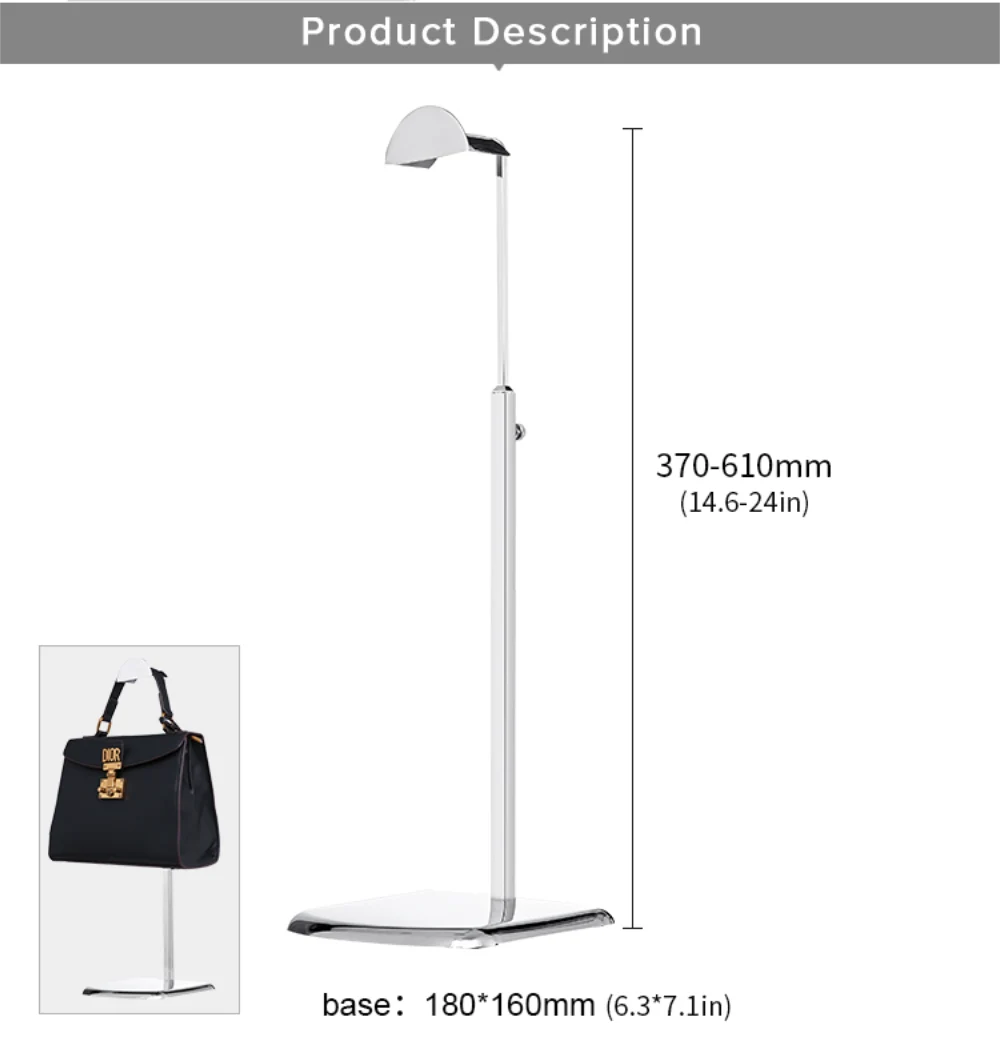 The height-adjustable feature of our display stand allows you to display handbags of various sizes, making it perfect for both compact bags and larger totes. This flexibility ensures your store’s displays can evolve to fit different product ranges, giving your store a dynamic, ever-changing presentation.
