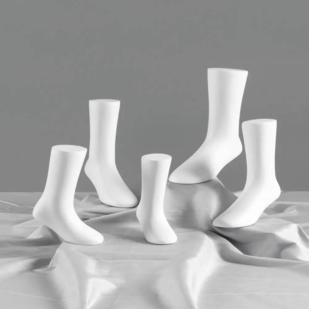 Elevate the display of your socks, booties, and short hosiery with our range of Fiberglass Short Leg Mannequin Foot Models. Available in a sleek Matte White finish, these professional forms are essential for retailers, e-commerce stores, and photographers who require a realistic and stable display for their products.