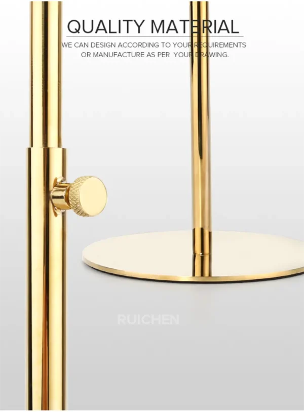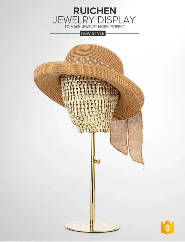 Our Hat Display Rack redefines the art of retail presentation. Featuring a stunning design with gold metal plates arranged in a fish-scale pattern, this display rack combines functionality with unmatched aesthetics. Perfect for clothing stores and boutiques, it turns your hat collection into a statement display. If you’re looking for a custom finish, we offer a variety of metal options to match your store’s unique style.